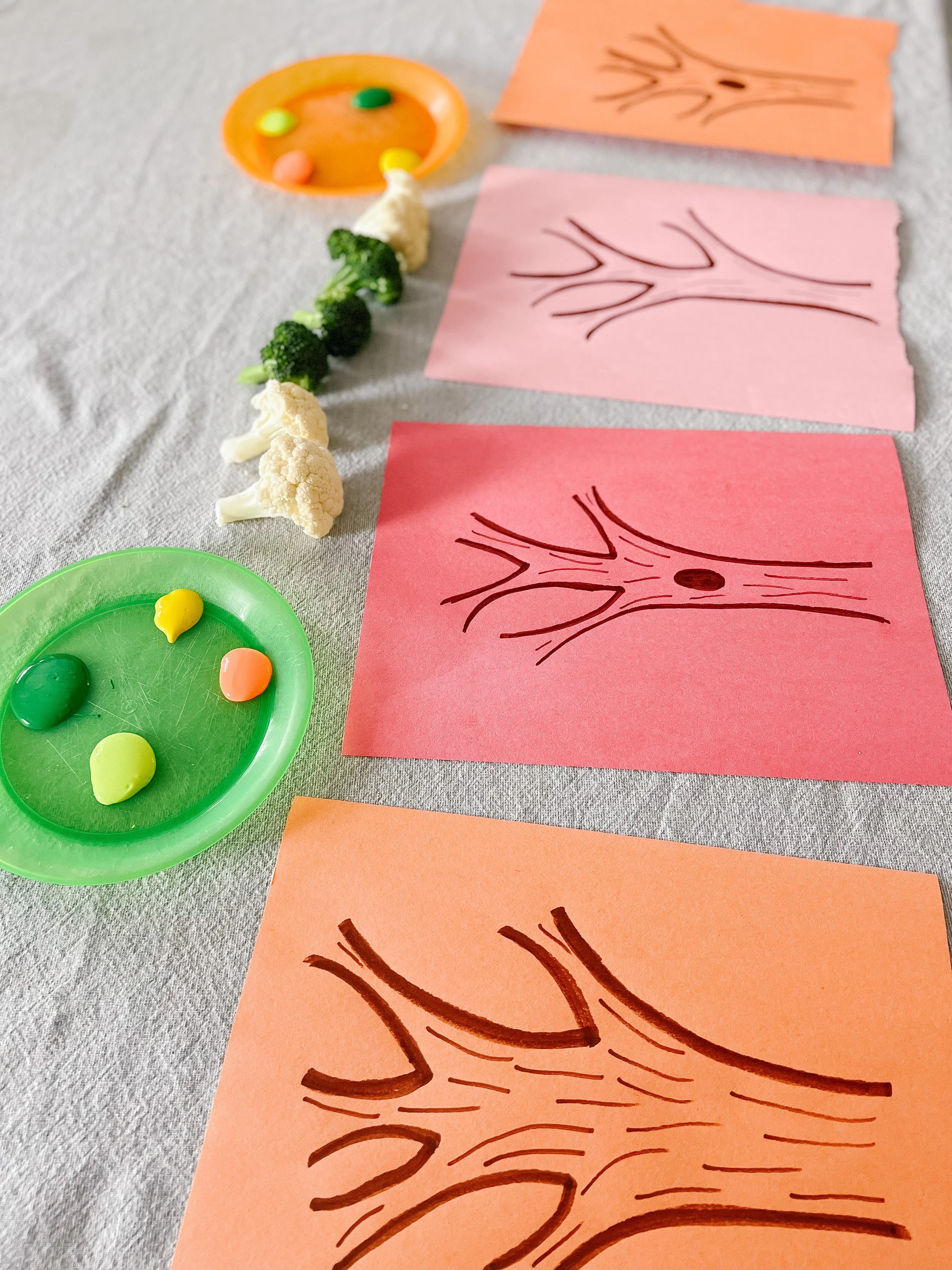 3) Lay out a variety of vegetables in different sizes for your child to use and have them start stamping.